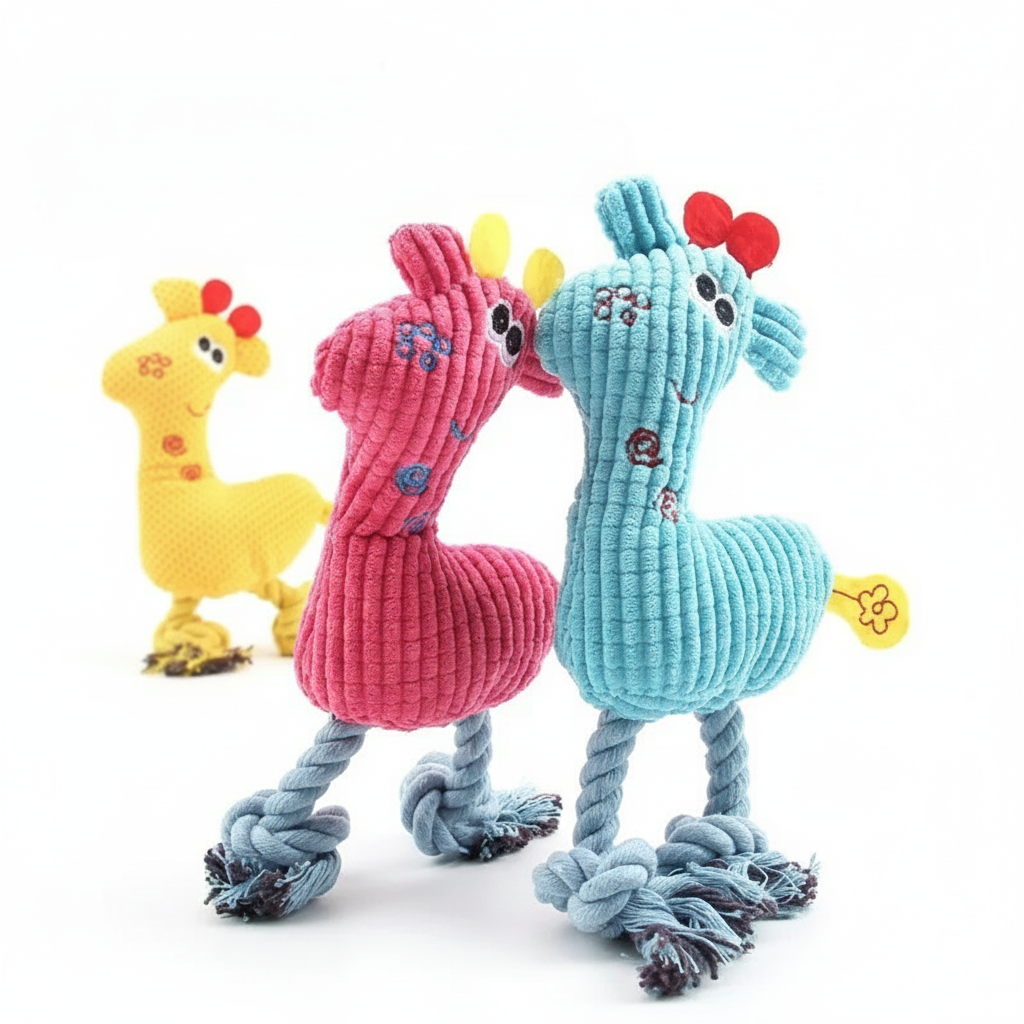 Interaktives Giraffen-Kuscheltier mit Squeaker – Robustes Fleece für Welpen & kleine Hunde