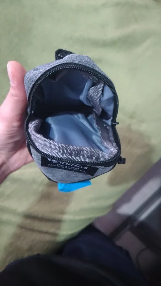 Light weight, hold tight on the leash and can put two rolls of bags inside. The treat keeps well inside. So far so good.