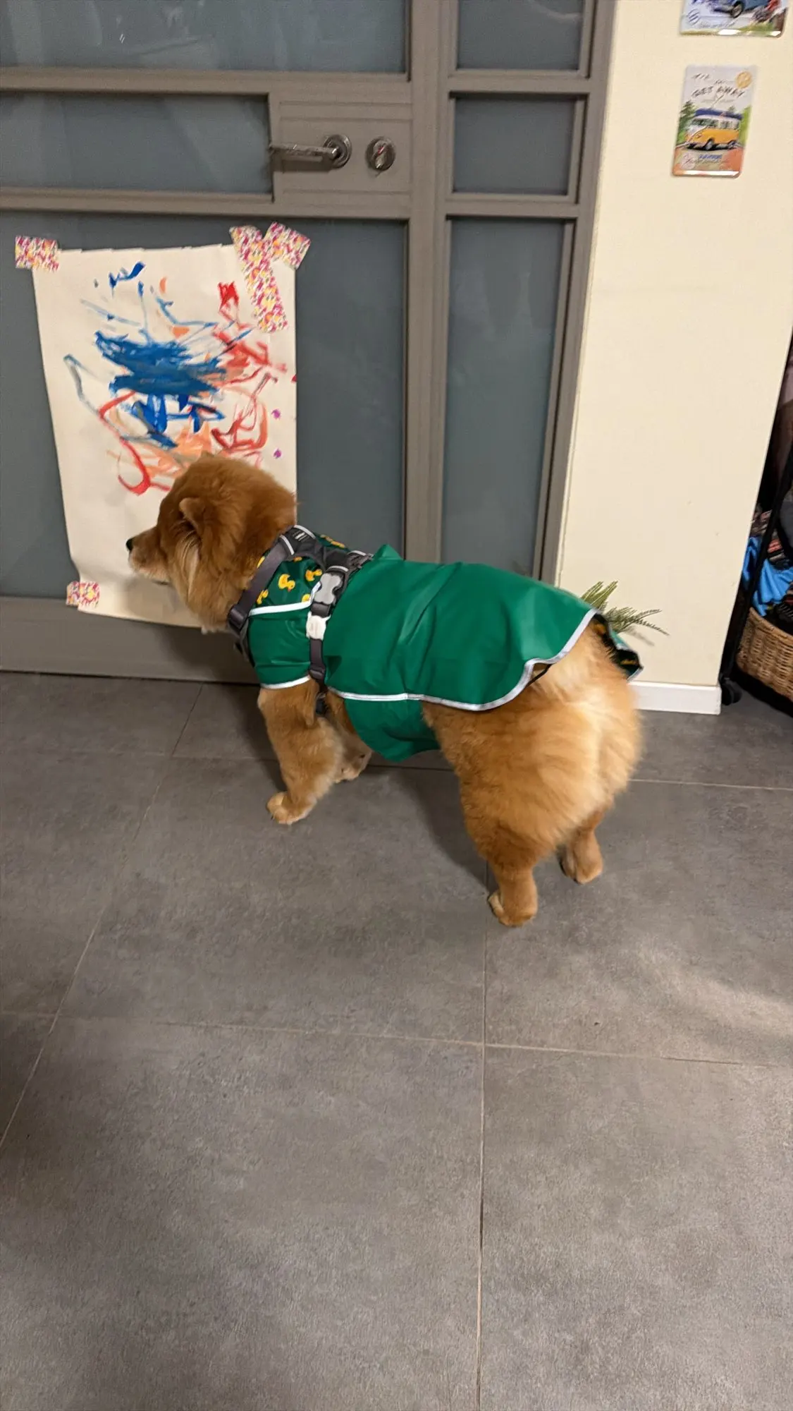 The raincoat-jacket is cool, but size 5XL is a bit too big for my German Shepherd.