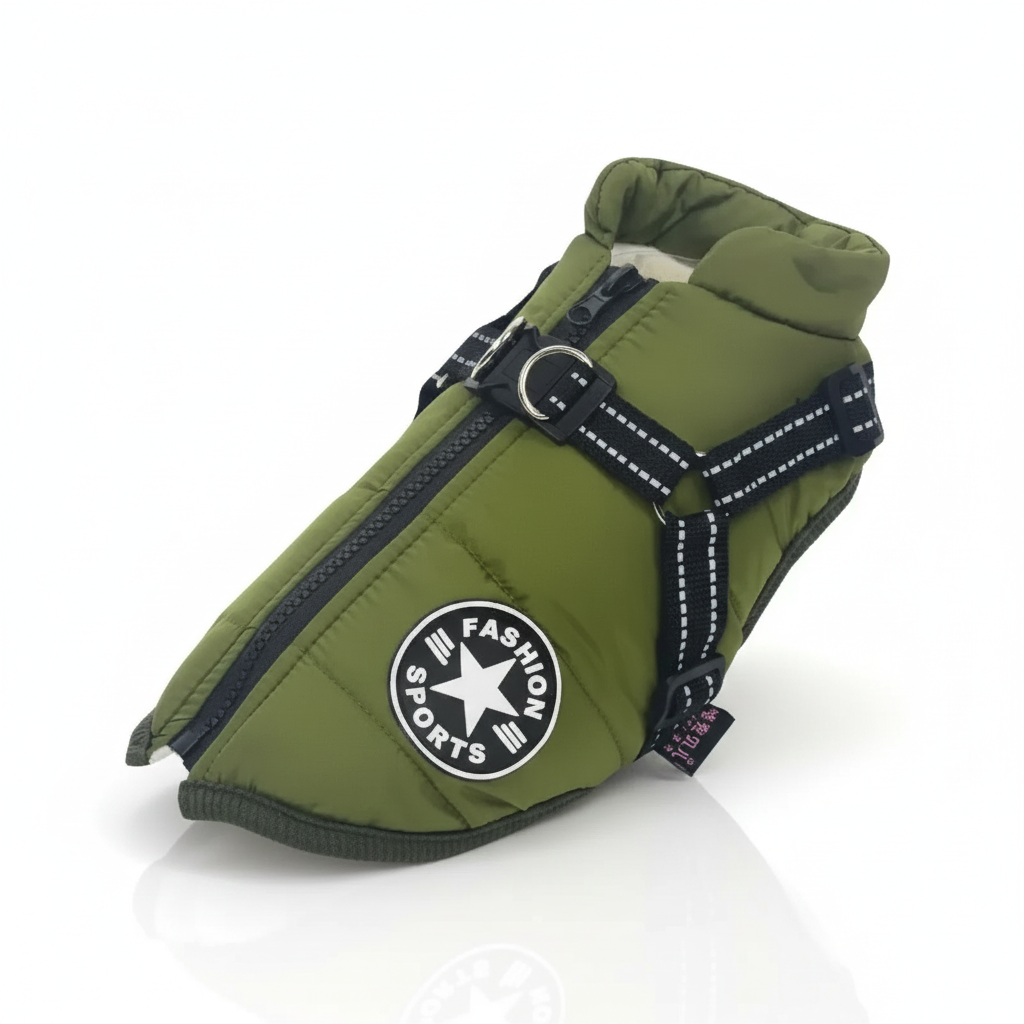 Waterproof Winter Dog Jacket with Integrated Harness – Warm Padded 2-in-1 Coat