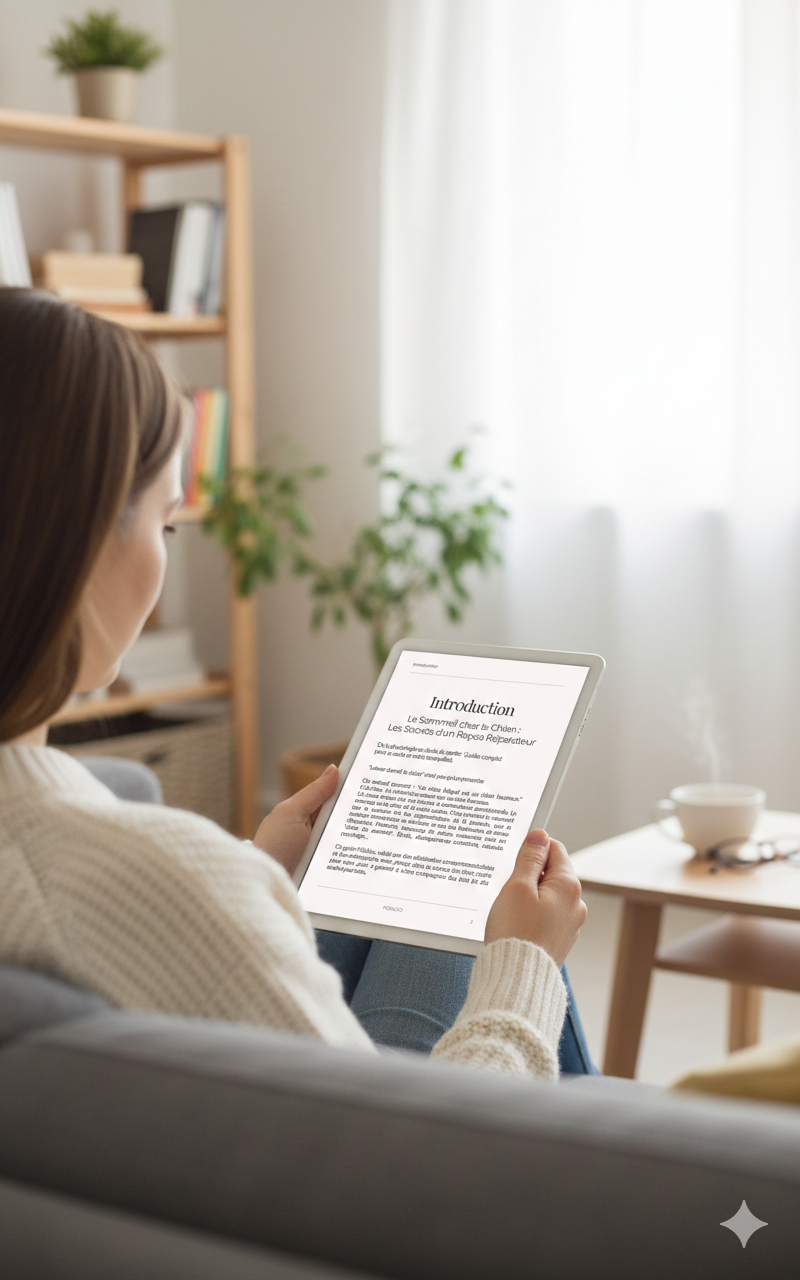 La grande force de ce guide réside dans son Rituel du Coucher. Une méthode chronométrée, étape par étape, pour apaiser le système nerveux de votre chien avant la nuit.