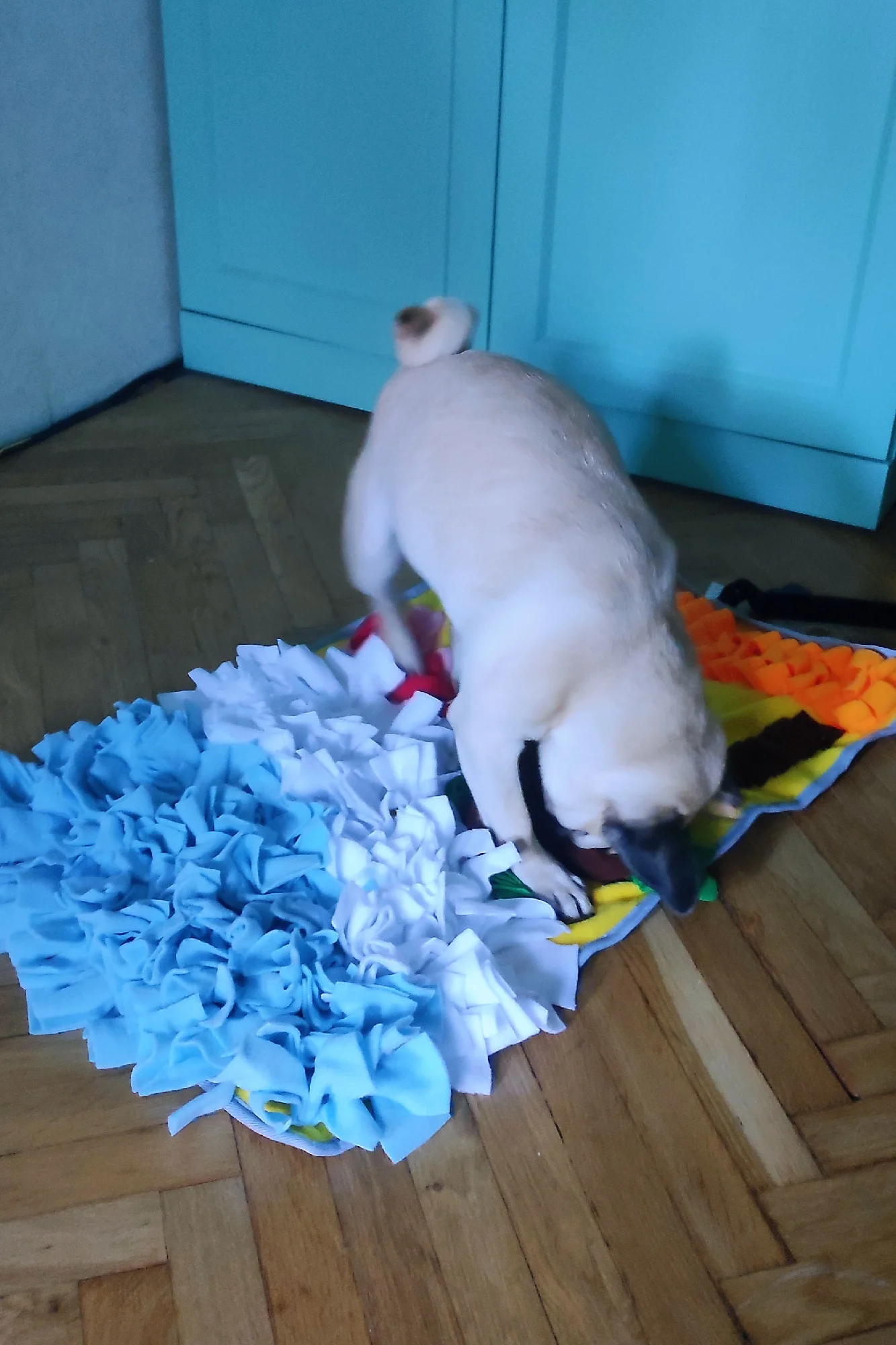 Le flair est au cœur de la nature canine. Saviez-vous que 10 minutes de stimulation olfactive équivalent à une heure de course pour votre chien ? Ce tapis de reniflage (snuffle mat) est l'accessoire d'éveil idéal pour satisfaire l'instinct de recherche de votre animal, soulager son anxiété et canaliser son énergie de manière constructive à l'intérieur. Grâce à ses multiples cachettes, il encourage une alimentation lente, prévenant ainsi les risques d'étouffement et les troubles digestifs.
